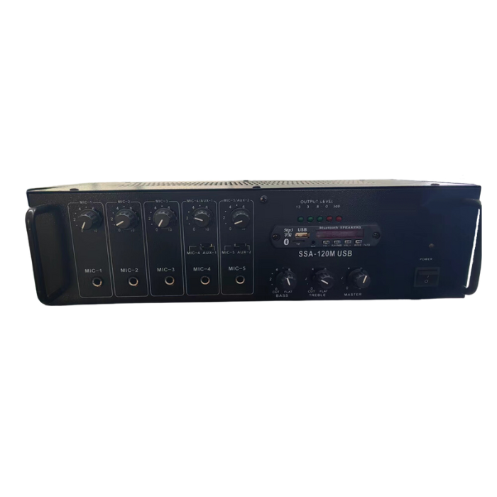 DC24V/AC220V Impedance: 4-16Ω 70V,100V Respons: 100HZ-1KHZ,power:120w RMS/140W MAX 5-MIC,2-AUX Input,With USB/SD/MMC/BT